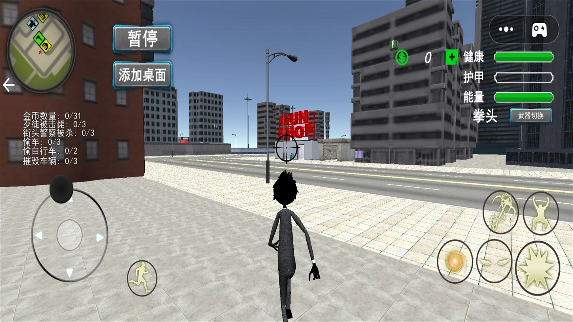 角色的移动方向可由虚拟摇杆操控,射击、跳跃、翻滚等动作则能通过按键来执行。