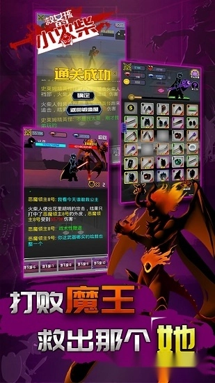 战斗的核心玩法本质上是挂机模式,无需手动操作,只要为小火柴搭配好武器装备,战斗过程就会自动展开。