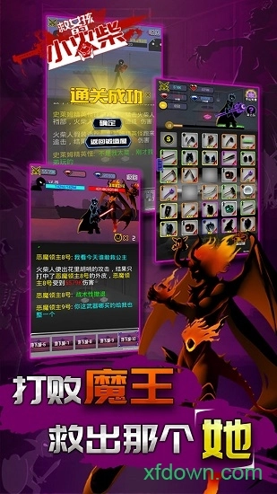 救女孩的小火柴游戏是大型冒险类战斗游戏,不过在这个版本里它变成了放置类休闲游戏。故事设定是你的小女孩在王国中被抓走了,你得拿起武器去营救她。冒险途中会遇到各种不同的火柴人敌人阻挡你的去路,让你的营救之路充满艰辛,你需要逐个击败这些敌人才能继续前进。