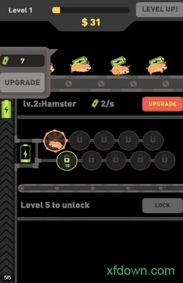 6、实现了自动化,只需要玩家招募更多仓鼠为自己效劳,并且升级发电装置即可。