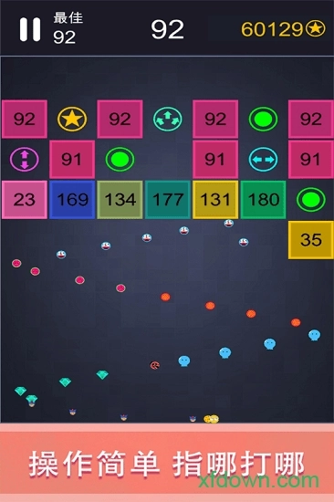 《轻松躲避》是一款经典的打砖块游戏!想必大家还记得风靡全球的经典打砖块游戏,与俄罗斯方块齐名的最令人上瘾的游戏“打破砖块”,这是全新设计的豪华版本,单手操控、数十种道具、超华丽的游戏界面、最刺激的视觉特效,定令你乐在其中,游戏规则很简单,你的目标是收集道具,射击掉所有的砖块完成关卡任务!