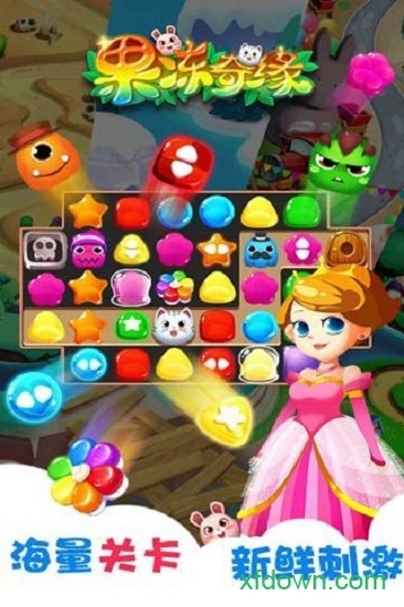 果冻奇缘是一款休闲益智类的消除游戏,Q版场景设计,丰富关卡挑战,特色动态障碍,让你根本停不下来。在果冻奇缘里充满奇幻色彩,美丽的公主Cindy带着萌猫和粉兔闯进了果冻的世界,可恶的继母伙同果冻怪为了阻拦她们前进,设置重重陷阱困住萌猫,并绑走粉兔。她们能否成功闯过难关,战胜继母,你愿意与她们一起去冒险吗?