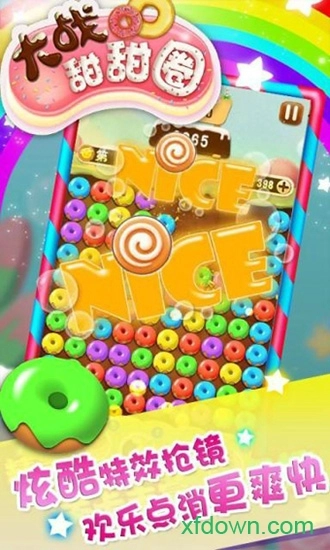 清凉一夏,全民一起大战甜甜圈!炎炎夏日,清新可爱的冰激凌蛋糕风给大家带来一丝清凉。全民休闲,上手简单,只要轻松点击相同颜色的蛋糕圈圈即可完美消除,看似简单而又不简单,关关挑战,你会发现这是在挑战你能力,让你欲罢不能,爱不释手。游戏以糖果蛋糕为主题,Q版的画面风格,轻松欢快的音乐旋律,绝对颠覆你的感官。这个夏天,不仅有欢乐消除,还有冰激凌为伴,超级上瘾,清凉和令人陶醉的消消乐