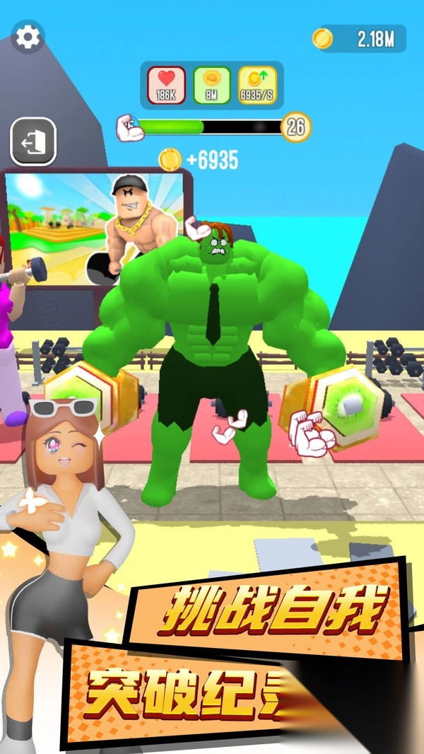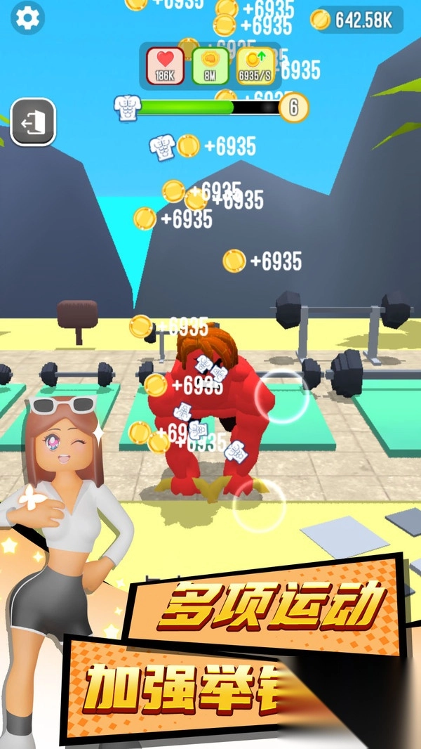 锻炼就能赚金币,还能提升力量和耐力属性,解锁全新健身动作后,角色的肌肉线条会更硬朗、更有冲击力。