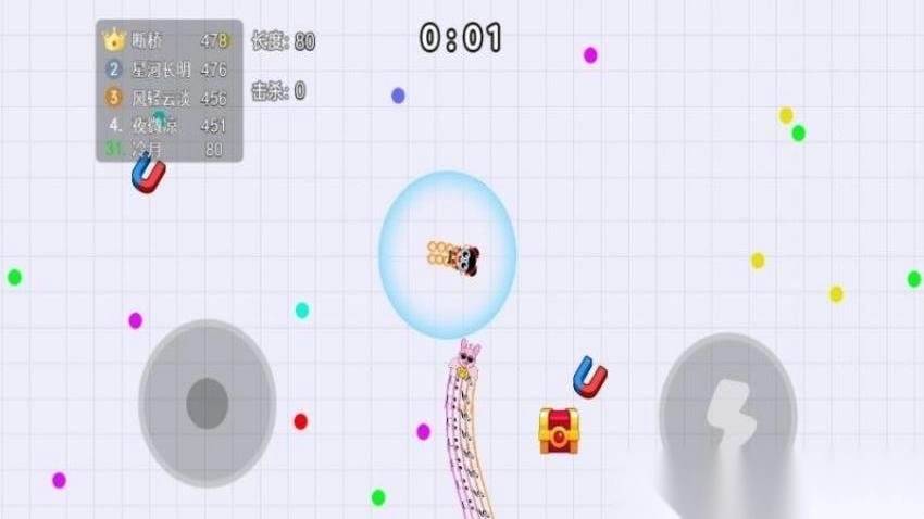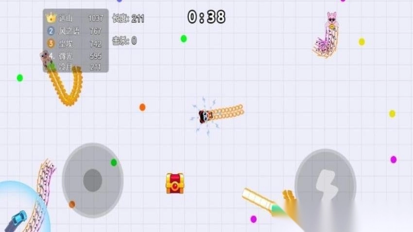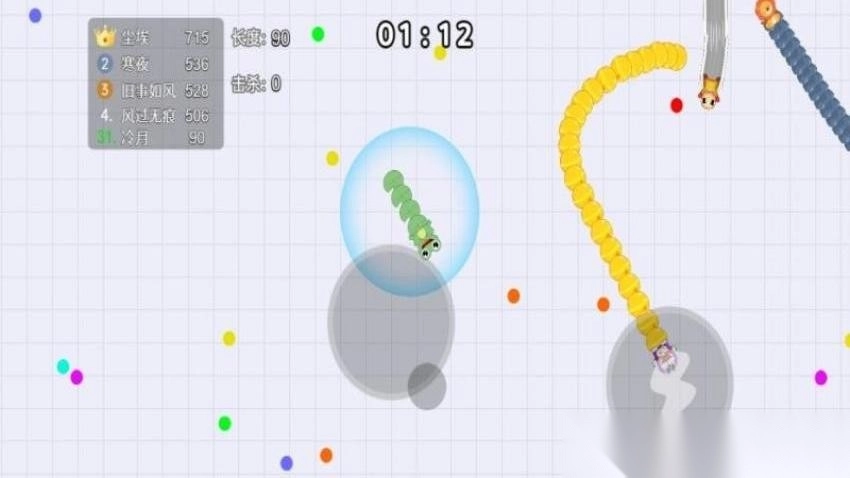 当蛇吃掉其他玩家或者地图上的能量球后,蛇的身体就会变长,同时还能解锁特殊技能。
