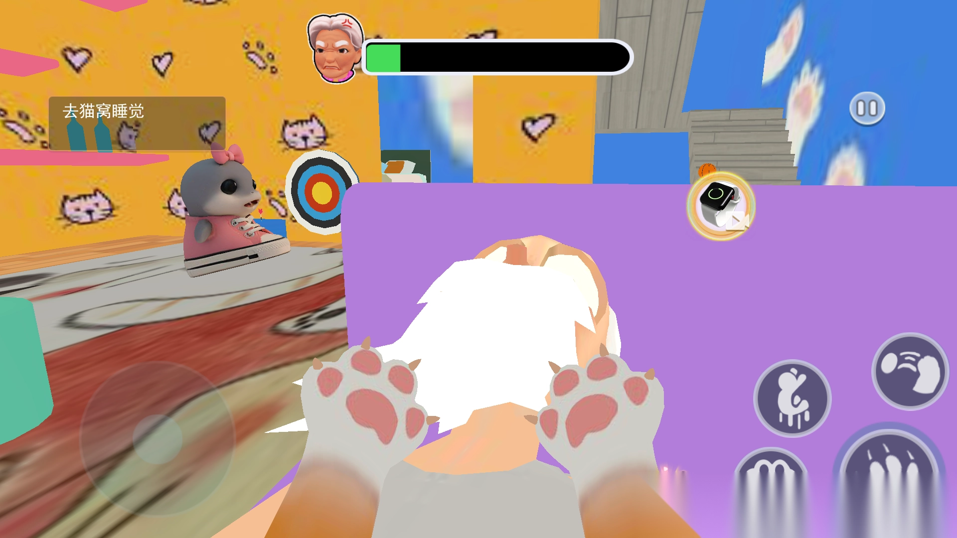 《猫狗城市物语》是一款充满欢乐的猫咪模拟游戏,你将化身一只调皮捣蛋的猫咪,在奶奶家中尽情“搞事情”——既可以悠闲地舔毛打盹,也能故意推倒花瓶制造小混乱;在这座藏着不少秘密的房子里自由探索,完成各种趣味任务,与奶奶展开一场场斗智斗勇的小较量,沉浸式体验无拘无束的猫咪冒险日常。