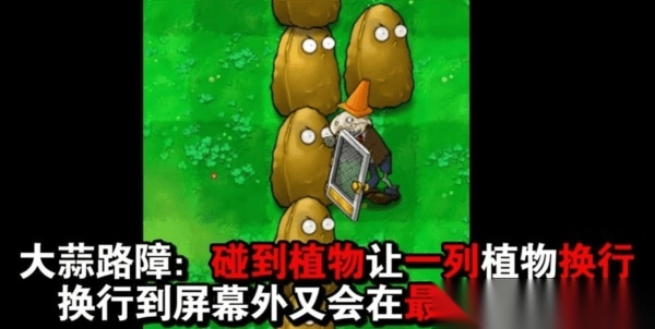 大蒜路障:当遇到植物时,会使一列植物进行换行操作;若换行后超出屏幕范围,这些植物就会从屏幕最下方重新出现。