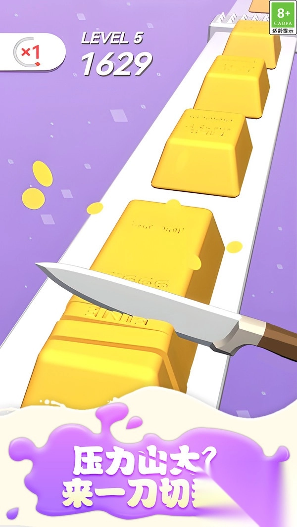 游戏里的飞刀设计颇具特色,玩家能够借助调整飞刀的力度与方向,达成多样的切割效果。