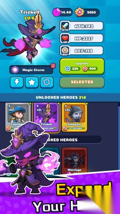 3. 积累金币与战斗经验后,能够永久增强角色基础属性,达成真正的无尽成长。