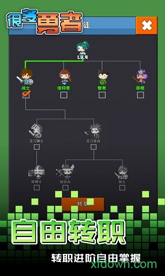 2、多职业的路线选择,各种不同的勇者技能随意搭配;