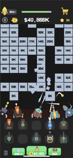 2.大量属性不同的砖块,升级你的战机去粉碎它们。