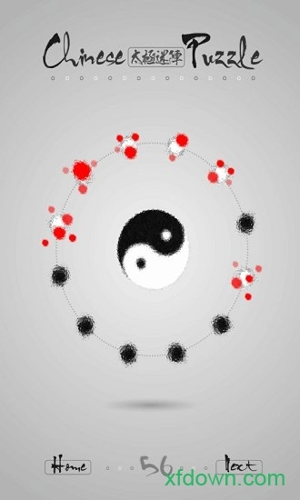由太极中心会发散出去两个小点,系统会让初始的圆颜色不完全相同。点击太极与小圆的中间,即可出现一条中轴线,代表将会改变颜色的目标小圆,再点击一下中间的太极图,小点就会变成反向的颜色(黑变白或白变黑),外圈所有的小点颜色完全一致,则过关。操作起来很简单,第一关甚至乱点就能过。事实上,游戏在前50关算是比较简单能摸到一定规律的,即使你不知道迷阵中的要素,也有可能靠运气瞎点出来。不过游戏难度在51关时候剧增,就没有那么容易蒙混过去了,在51关就能让你领略到“难倒世界的中国难题,或许世上无人能解全关”这句话的意思了。