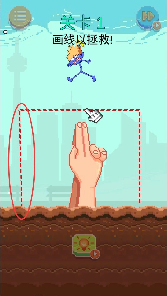 3、当遇到障碍时,用手指滑动来绘制保护线,为火柴人搭建安全的通道或者防御屏障,以此确保它能够顺利抵达终点,完成解救任务。