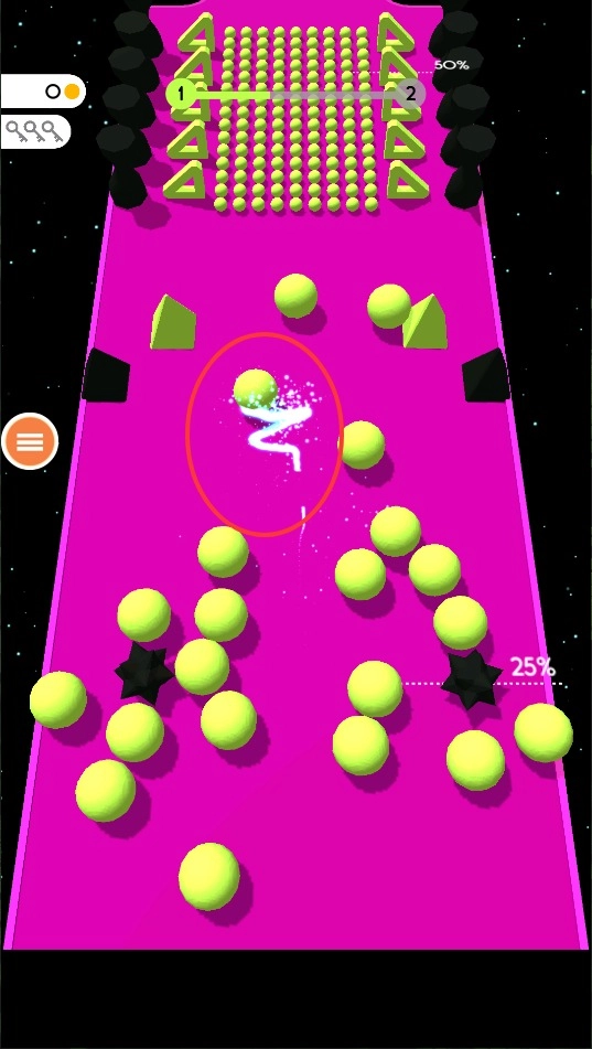 1、创新的色彩收集玩法,玩家控制小球吸收同色球体来实现成长,同时融入了颜色机制——一旦碰到异色球便会失败。该玩法操作简单却极具策略性,要求玩家提前规划好移动路线。