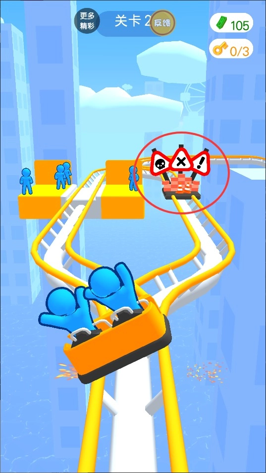 3、在规定时间内带领过山车安全通过所有水域区域,最终到达终点平台就能顺利通关并获得奖励。