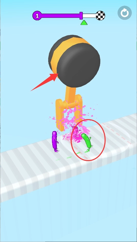 1、游戏开始后,你需要持续点击屏幕来让香肠人保持前进;一旦松开手指,它就会立刻停止移动。要注意把控好点击的节奏,尽量让它保持匀速前进。