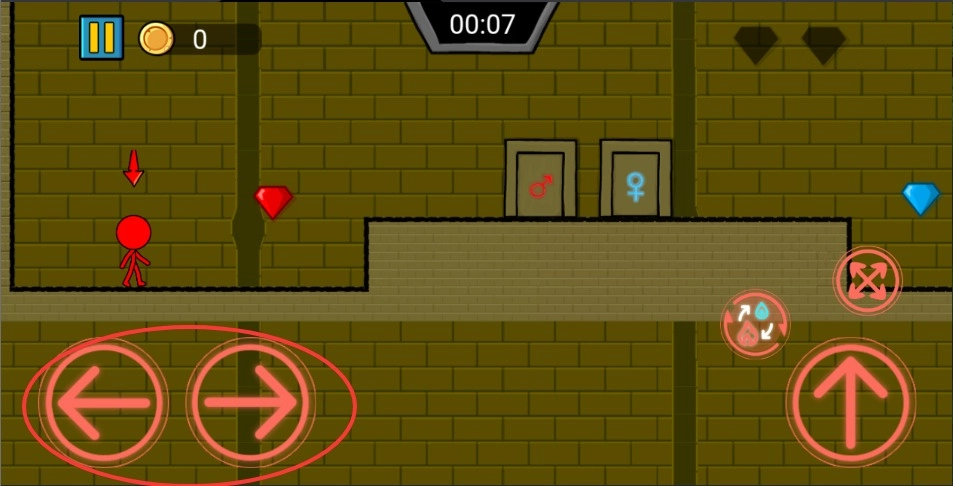 2、右侧玩家点击屏幕可让蓝人跳跃,以此跨越沟壑或登上高台,两人需相互配合,保证双方都能到达关键位置。