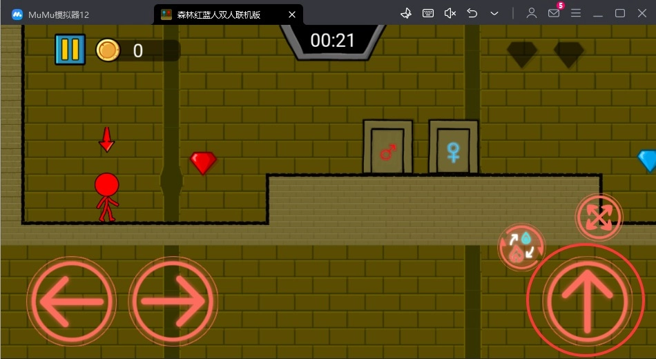 3、当红色与蓝色角色一起收集到足够数量的钻石后,通过协作打开终点的大门,两个角色一同进入就能顺利完成该关卡的挑战。