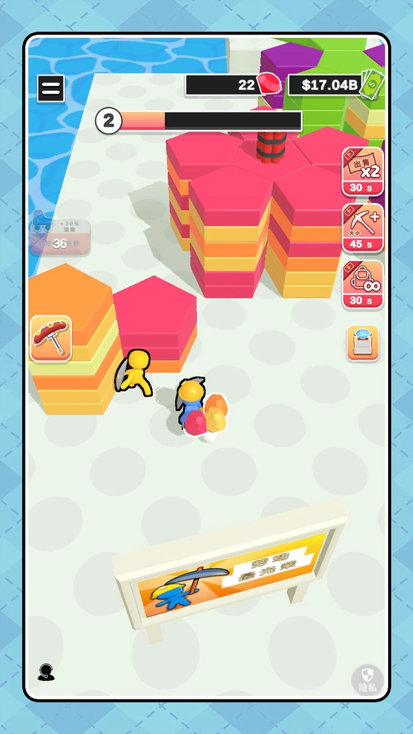 2. 系统升级体验超棒:镐头、工人、熔炉都可升级,操作简单却成长路径清晰,数值提升直观体现在采矿效率上,成就感满满。