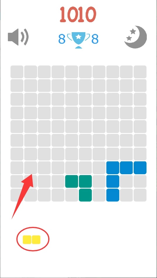 2、通过手指滑动将底部方块拖拽至上方网格区域,注意合理规划摆放位置,为后续方块预留空间。