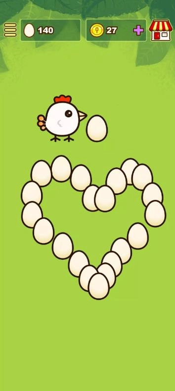 2. 点击草地上的区域,茉莉就会产下蛋,这些蛋还能孵化出和她颜色搭配一样的小鸡。