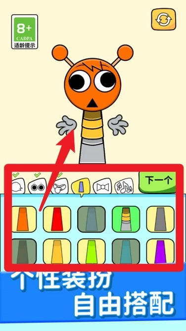 3.点击角色进入装扮界面,可自由更换帽子、眼睛、嘴巴与下装,组合方式超丰富。