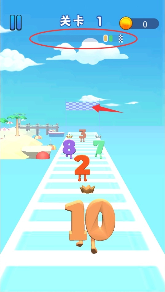 3、巧妙借助数字变化的机制,避开那些存在颜色相克属性的障碍物,一旦角色顺利到达终点的旗帜位置,该关卡便成功通关。