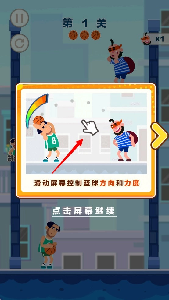 1. 瞄准投篮:按住屏幕并拖动,以此来调整秃头先生投篮时的角度和力度。