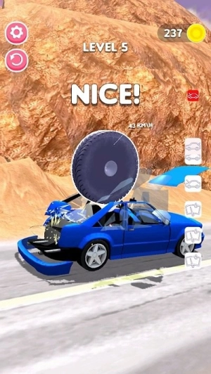 3、这款游戏门槛低但上限高,只需单指滑动就能操控轮胎,新手可以迅速上手;而高阶玩家则需要掌握好角度和力度,通过精准的撞击来触发连锁破坏,以此挑战极限分数记录。