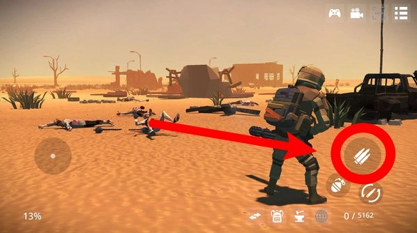 2.点击萤幕右侧的子弹图示按钮,即可快速开枪击退敌人,注意瞄准。