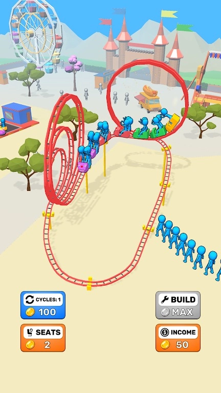 由于初始资金的限制,玩家需要对各项资源进行合理规划与分配。在通过经营赚取金币后,可逐步对过山车的座位数量、轨道长度以及刺激程度进行升级改造,以此来提升整体的盈利效率。