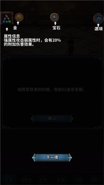 如图所示,界面上方展示着属性相关信息,当以强属性发起攻击对抗弱属性目标时,会额外产生20%的伤害加成效果。