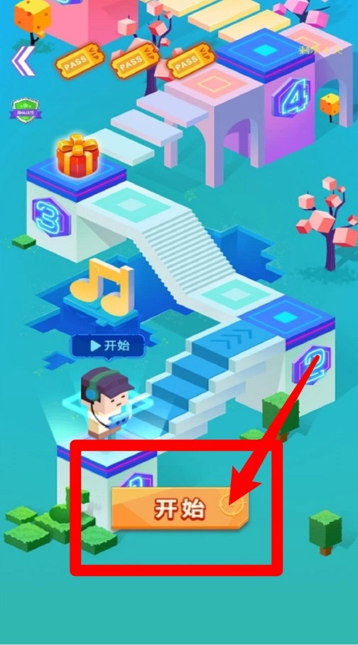 1. 点击开始按钮:点击界面右下角的【开始】按钮,即可开启节奏射击第一关的挑战。