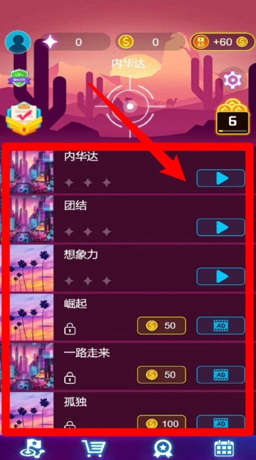 2. 曲目模式选择:点击列表里的歌曲图标,就能进入相应关卡进行挑战。