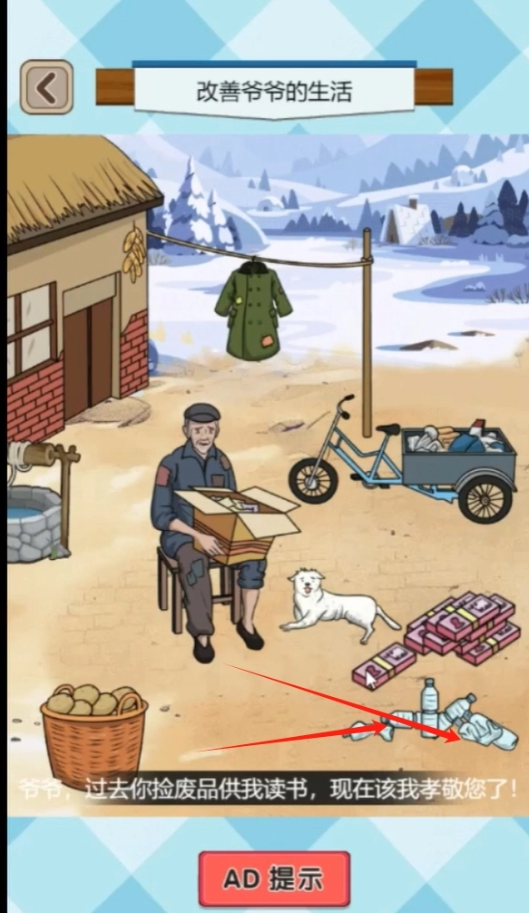 不要放过任何细节,无论是小物件还是人物的动作都可能藏着解谜的线索。就像在“改善爷爷生活”这一关卡中,要留意系统给出的提示,而其中的关键道具就是金钱。