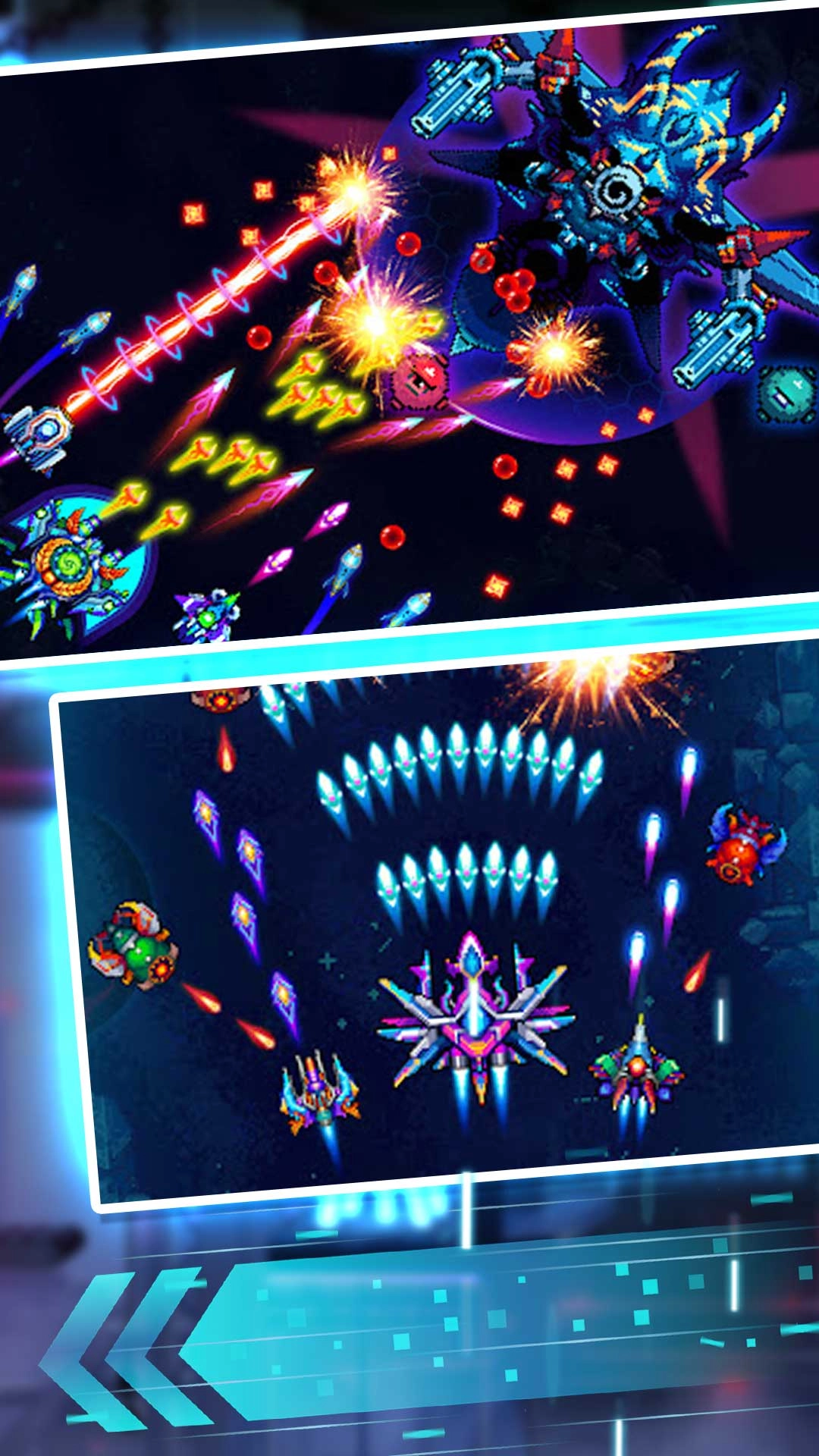 1. 运用科幻霓虹的美术风格,弹幕色彩清晰可辨,爆炸特效绚烂而不繁杂。