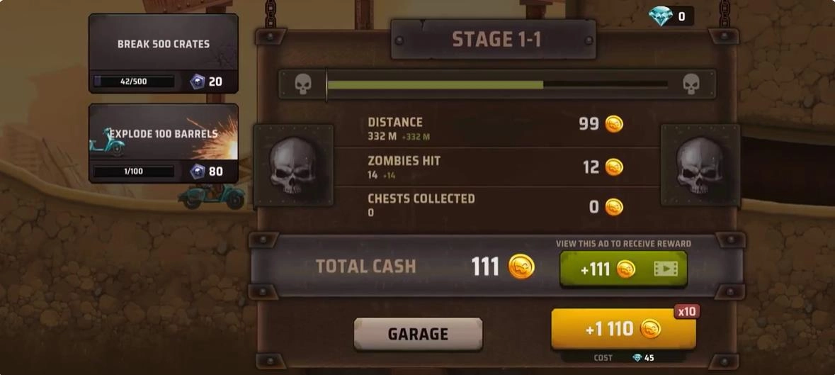 击倒沿途的僵尸,积累连击获得额外奖励。