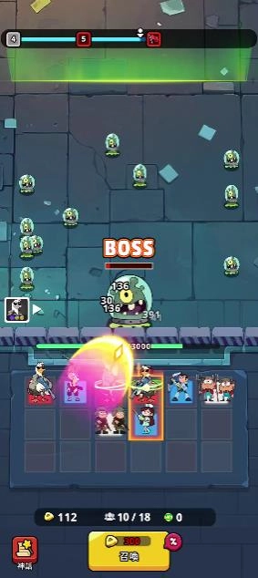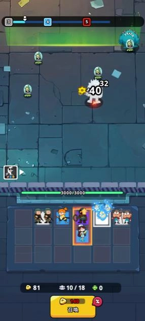 战斗中积累能量,适时释放大招或全屏技能打断敌潮。