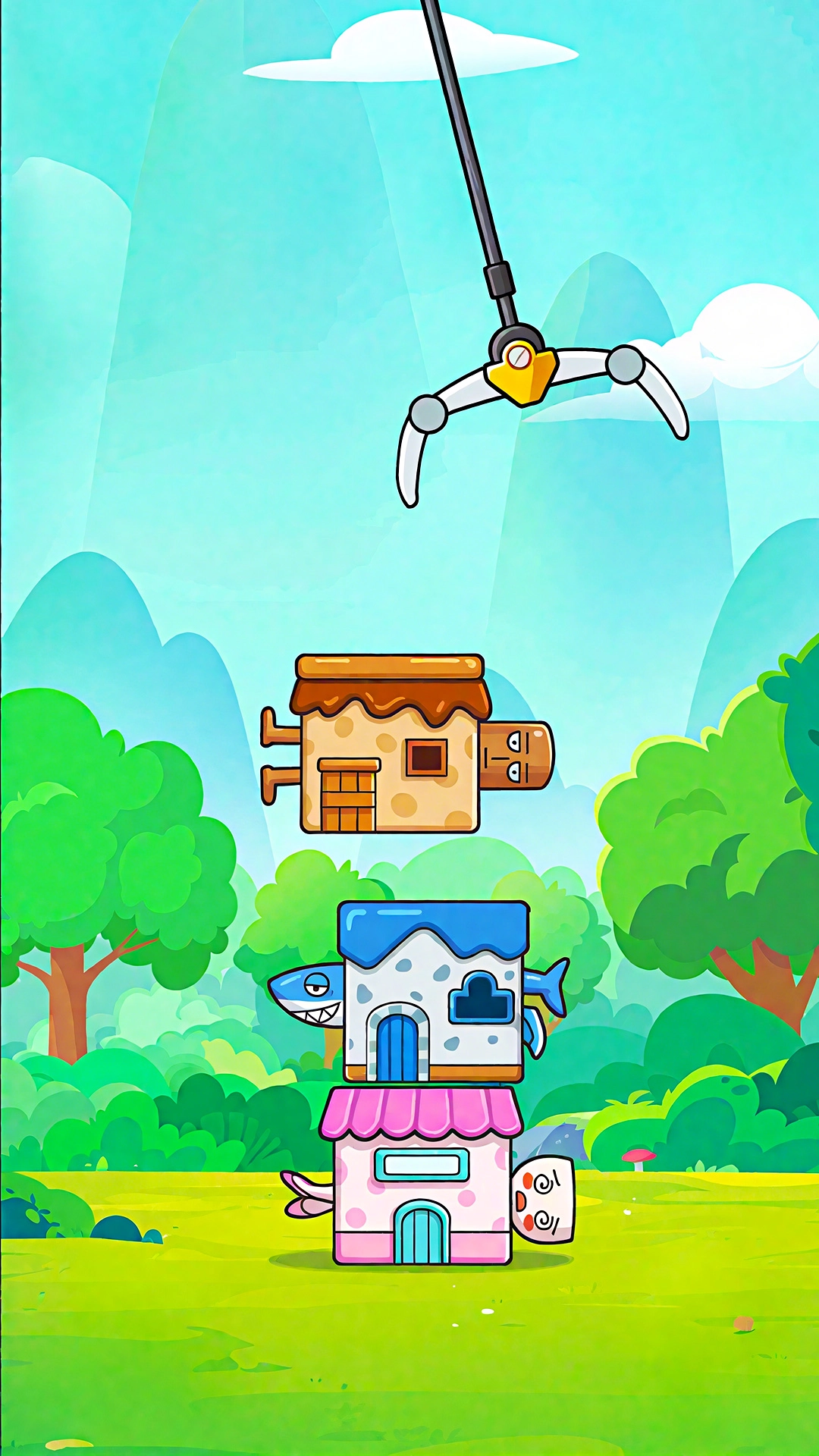 操控着大爪子去抓取各式各样造型的小屋,再精准地把它们放置到已有的塔层之上,尽力让这座塔维持平衡,并且不断向上增高。