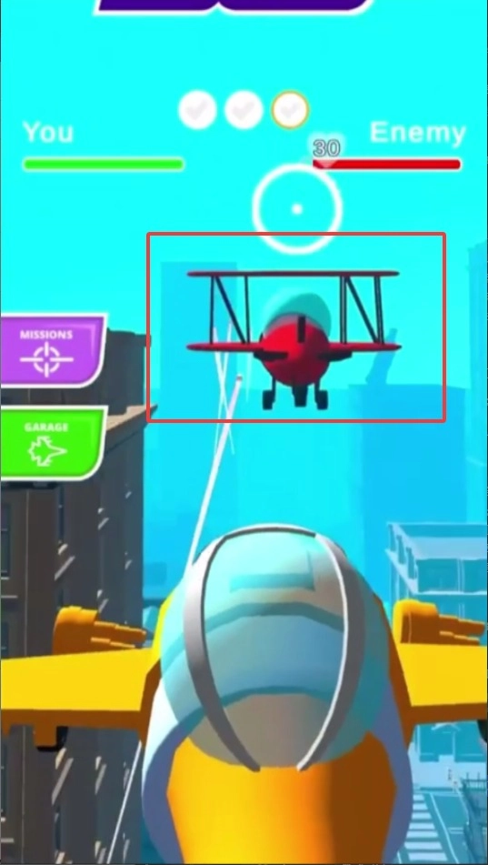 2、通过双指缩放能够调节准星的精准度,锁定目标之后持续按住攻击键就能发射子弹,要优先处理那些会追踪的敌机以保障自身安全。