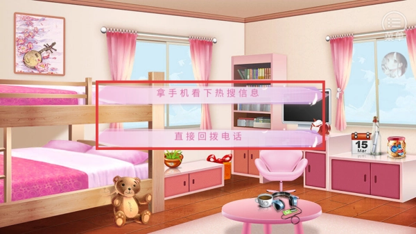 通过模拟查看男嘉宾朋友圈动态、接收节目组临时通告短信等真实社交场景,来增强用户的真人秀参与感。