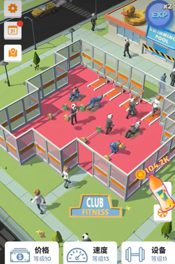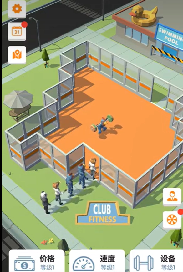 玩家要打理健身房的日常事务,像更新健身器材、调整收费价格、维持场地的良好秩序等,通过对管理方式的优化,来提高收入和顾客的满意程度。