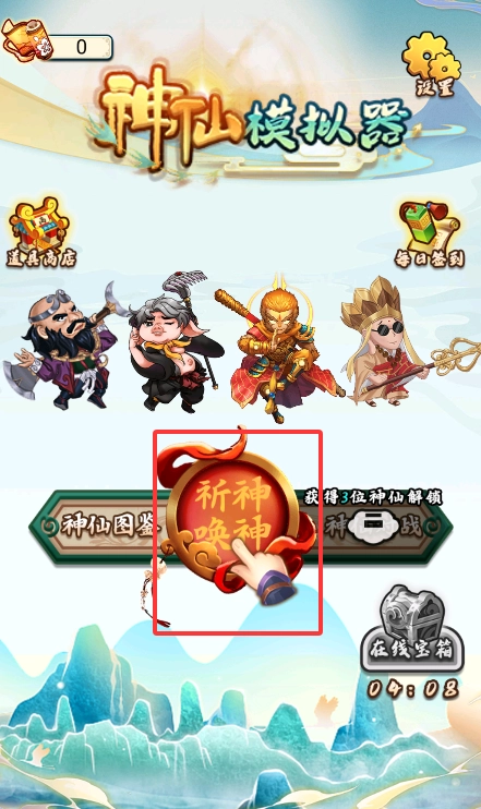 2、点击祈神召唤按钮即可开展神灵召唤操作,每一次召唤都有概率获取不同品质的仙灵伙伴。
