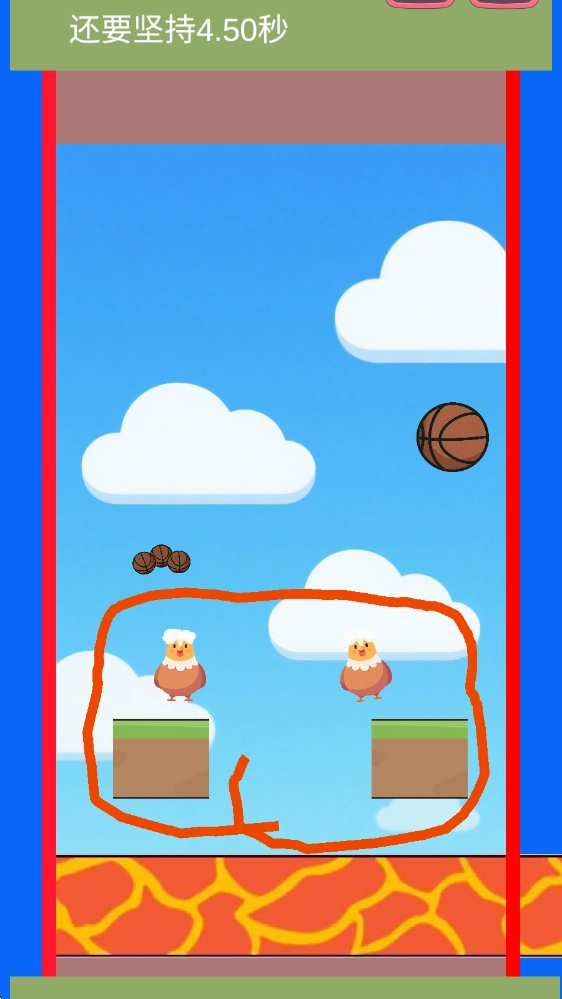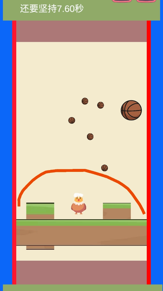 守护小鸡:只要小鸡没被篮球砸中,就能持续进行游戏,一旦被击中,挑战就会失败。
