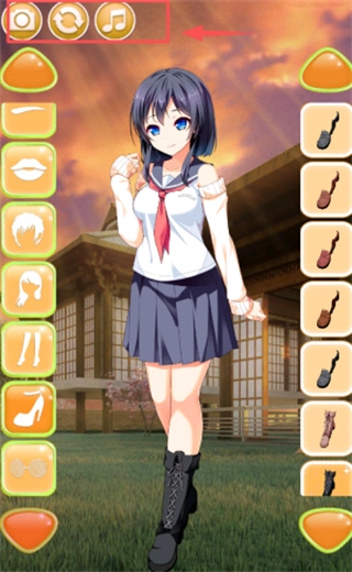 在草地场景里,望着面带微笑的女孩,点击顶部的相机图标或是旁边的两个圆形图标,就能开展一些特殊操作。你还可以点击左右两边的橙色按钮,挑选不同的发型与配饰来为女孩装扮。