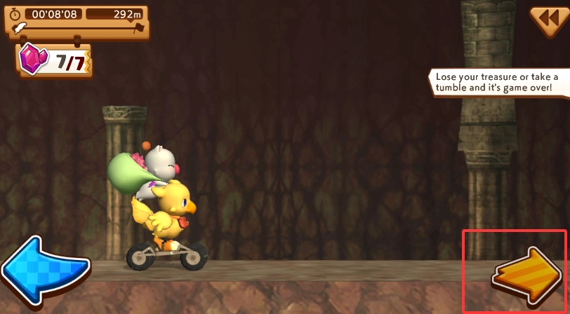 2、按住前进键能使陆行鸟保持持续加速奔跑的状态,遇到弯道和障碍时要灵活调整速度。