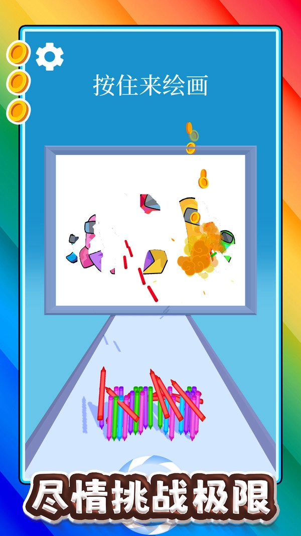 3. 通过手指左右滑动来操控画笔移动,在赛道上收集四处散落的彩色铅笔,以此拓展路径,打造出专属于你的独特彩虹赛道。