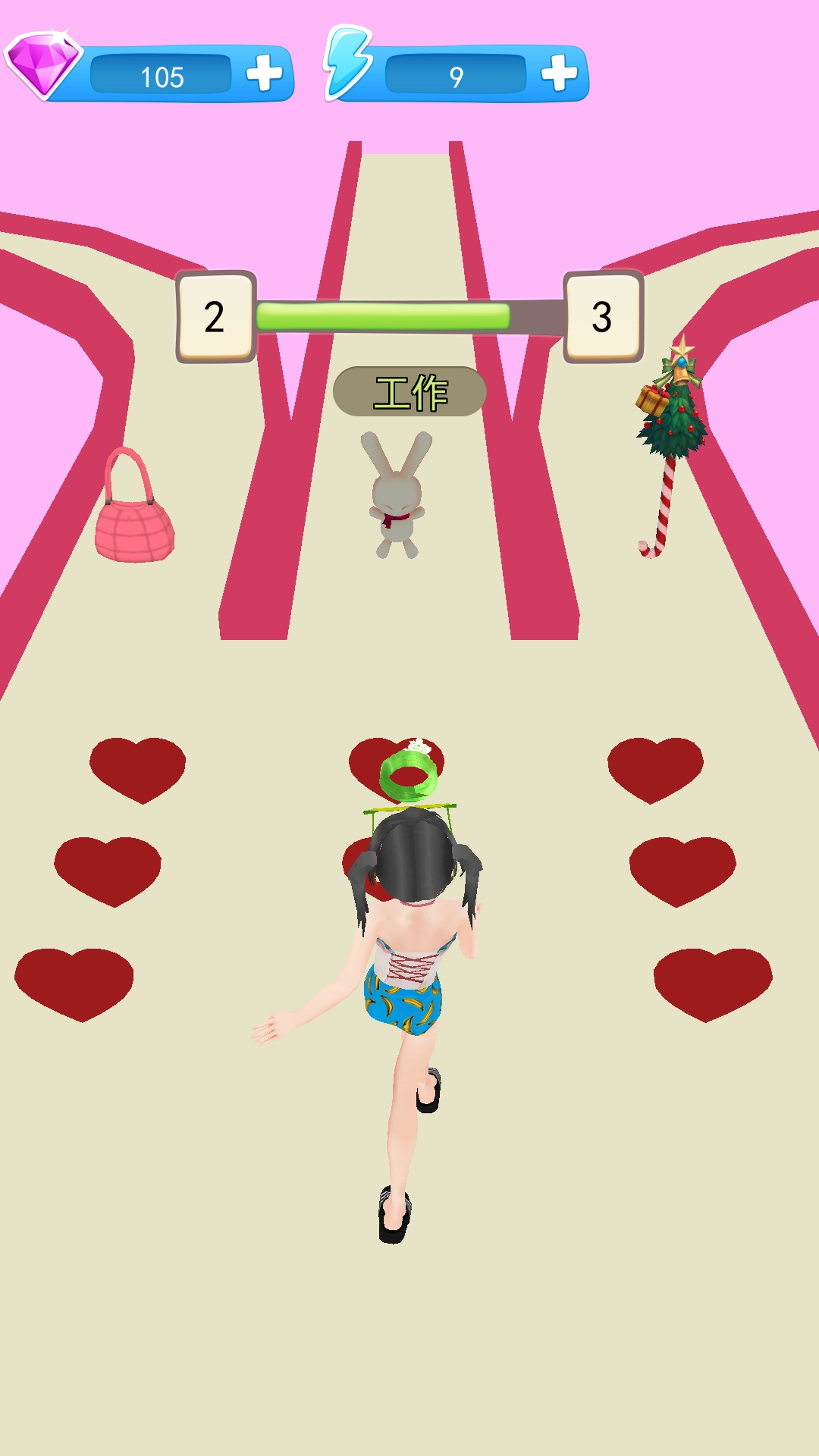 角色会自动向前奔跑,玩家通过左右滑动屏幕来切换跑道,需要拾取与主题相符的服饰,同时要避开风格不符的服饰或障碍物。