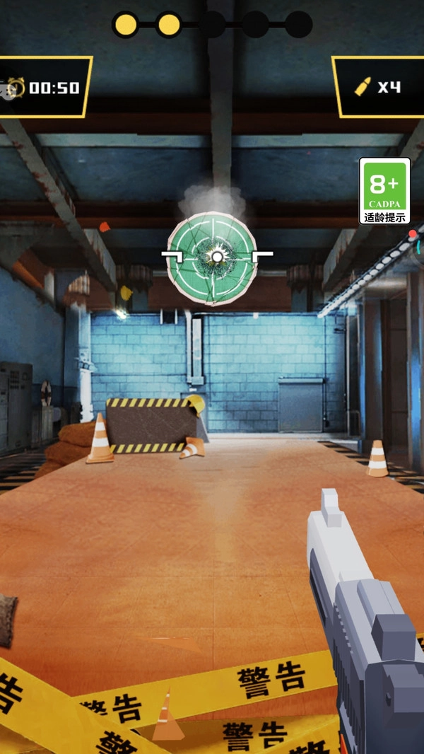 关卡难度会循序渐进地增加,前期主要聚焦于基础射击操作,到了后期就需要玩家把陷阱躲避、快速换弹等多种技巧结合起来运用,促使玩家持续挑战并突破自身极限。