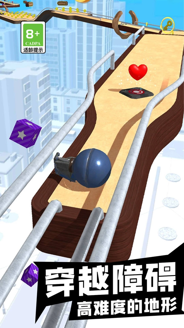 4.音乐动感十足:游戏内音效节奏会随着挑战进程同步变化,障碍声效与滚动声相互融合,能够增强玩家的专注度,让玩家更有闯关节奏的代入感。